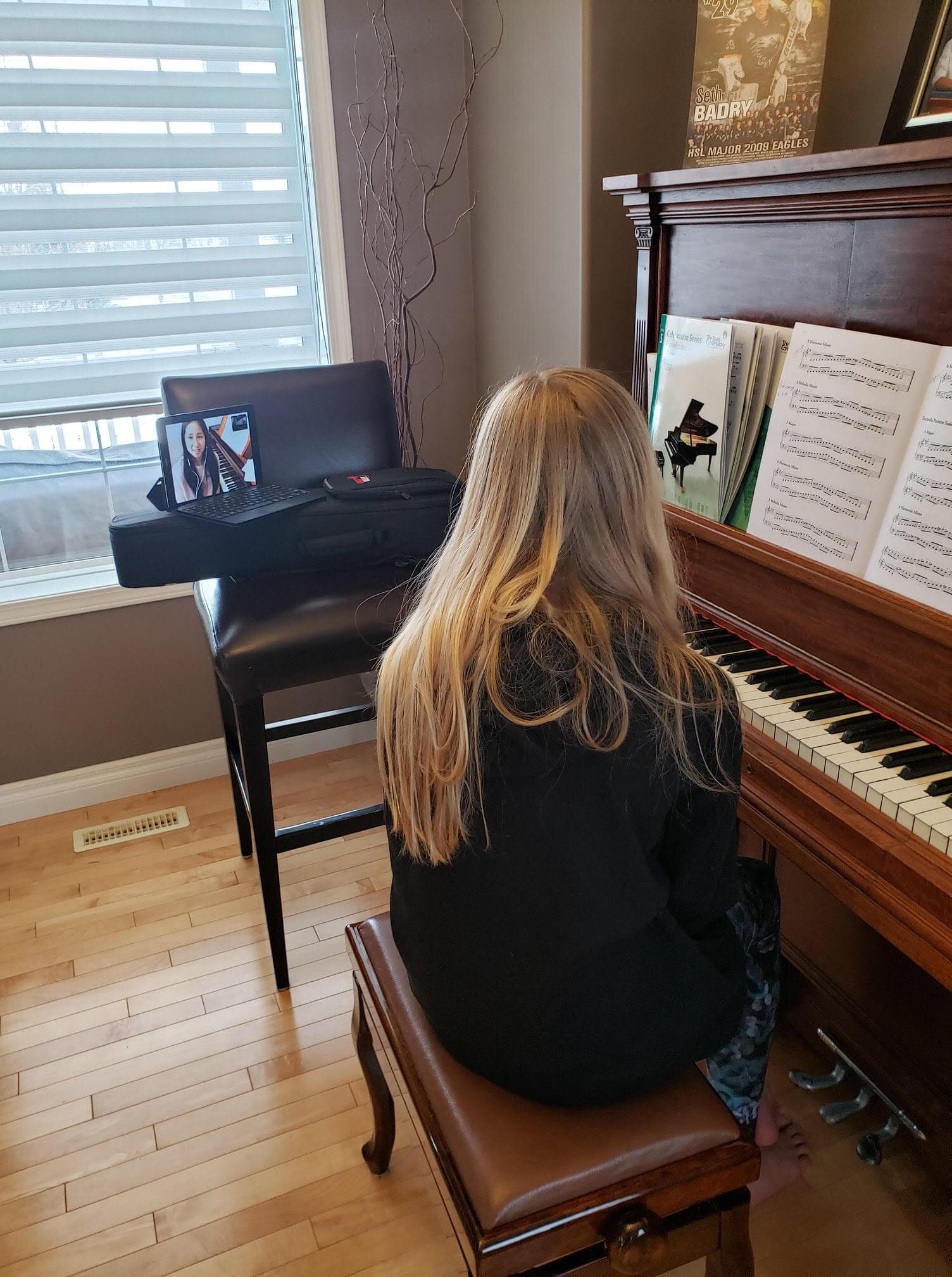 I am Kimberly Wong-Harwood, owner & instructor at North Peace Piano. We decided to switch from in-person lessons to virtual lessons earlier this year and are thrilled to let you know that they work just as good as in-person lessons, with more added benefits! In the past 6 months of online lessons, we’ve settled in and figured out that there’s nothing we used to teach in-person that we can’t teach online!